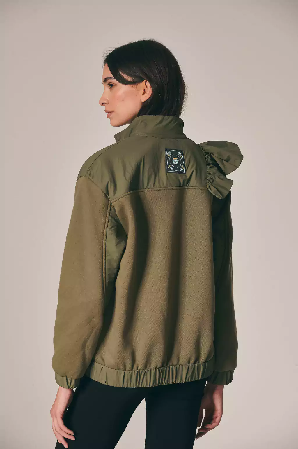 Campera tipo Bomber, confeccionada en frisa, combinada con tela pilotera.