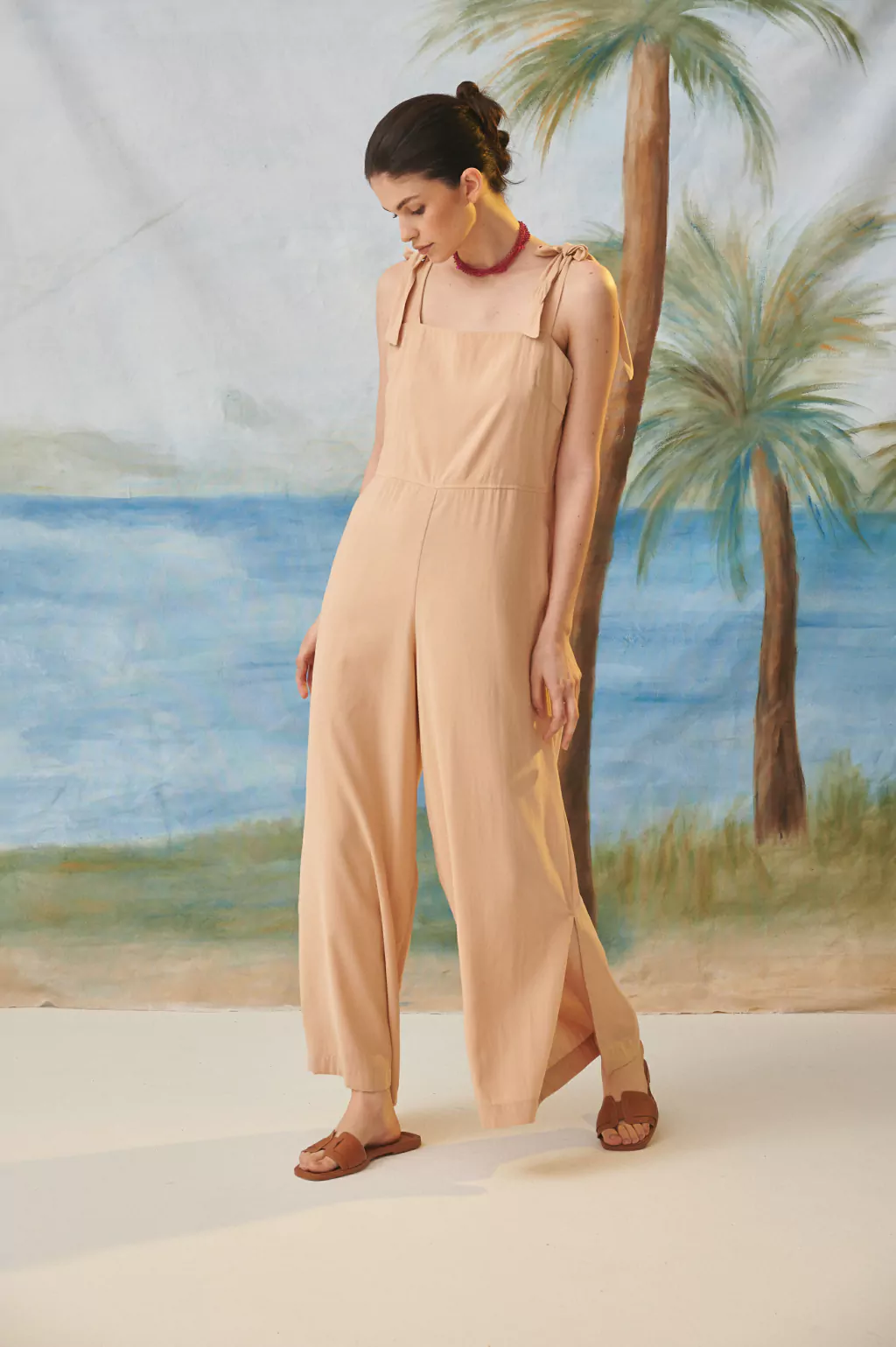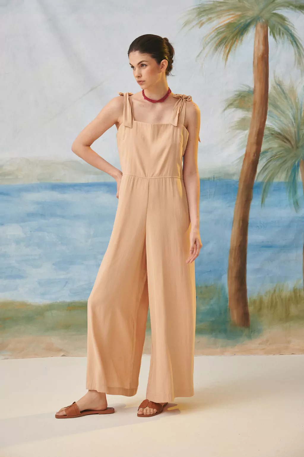 La prenda tiene un cierre invisible lateral, breteles regulables que se pueden anudar con moño o nudo.